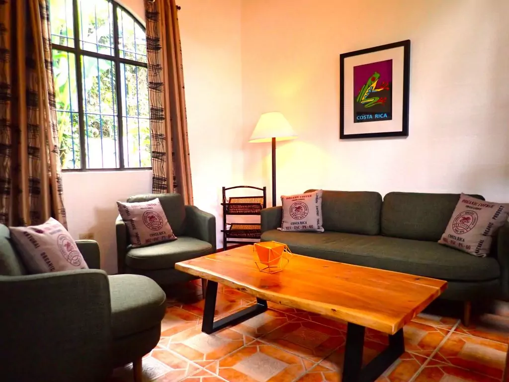 The Chalet is a fully equipped two-story villa with kitchen, living room, 2 bedrooms,1,5 bathrooms dining area and roof terrace with a gorgeous view to the volcanoes Irazu and active Turrialba.